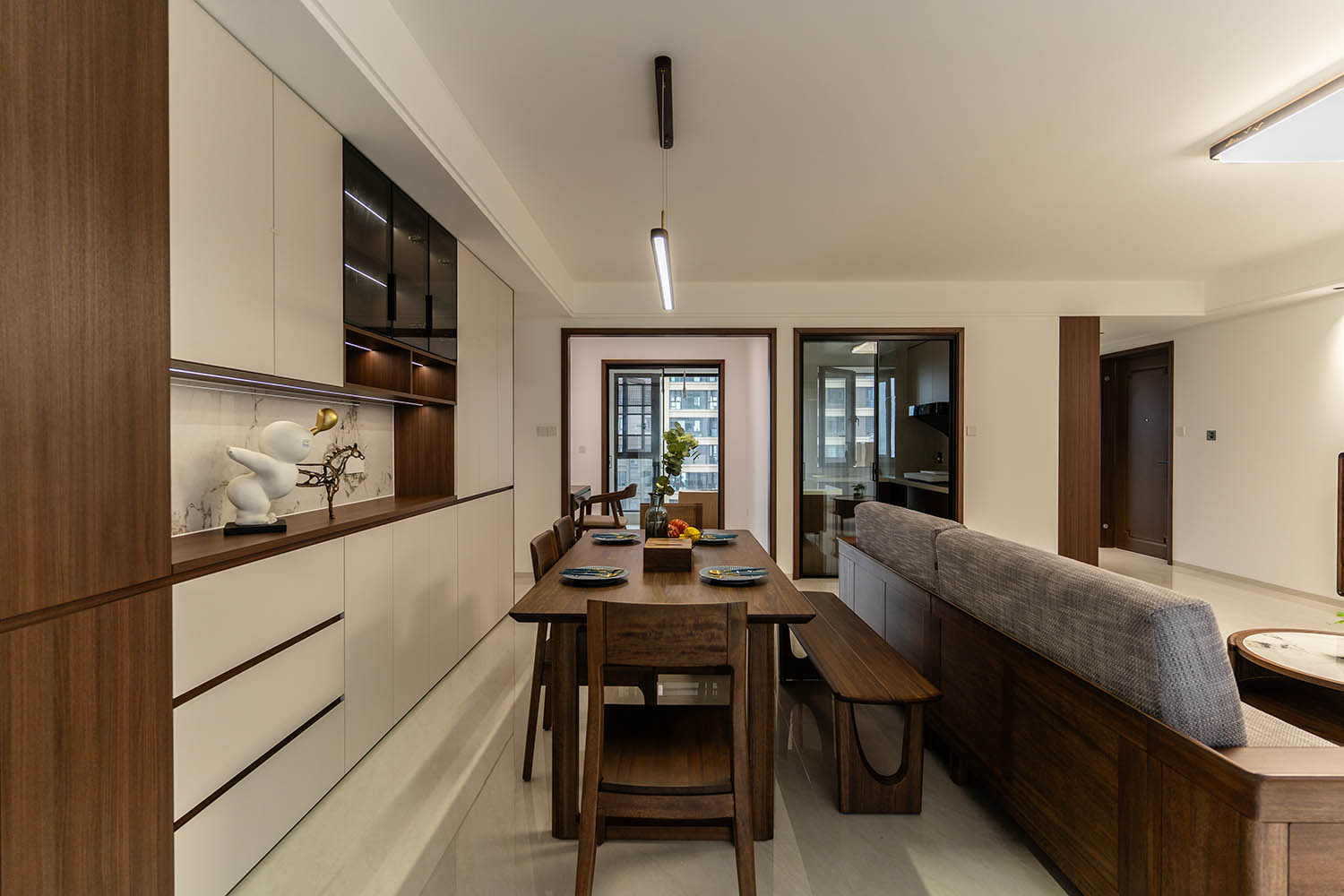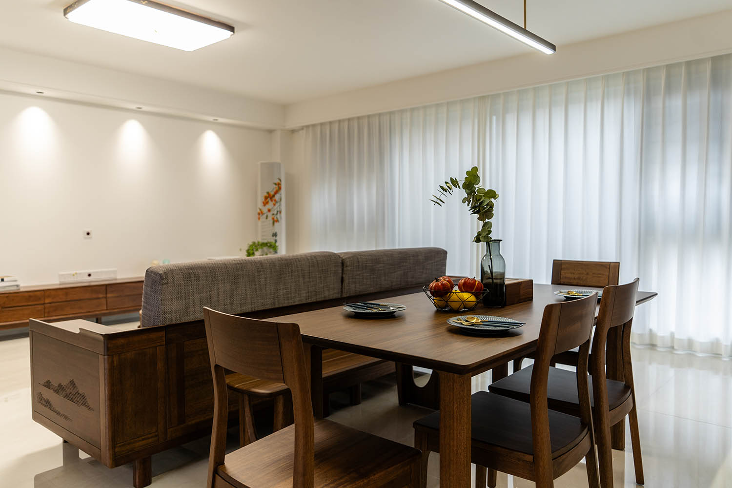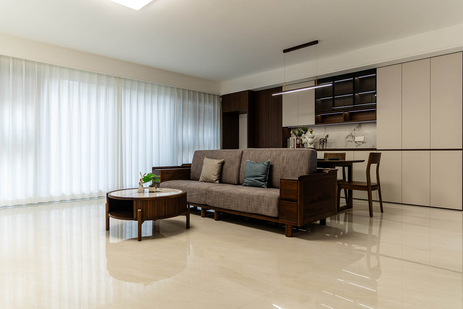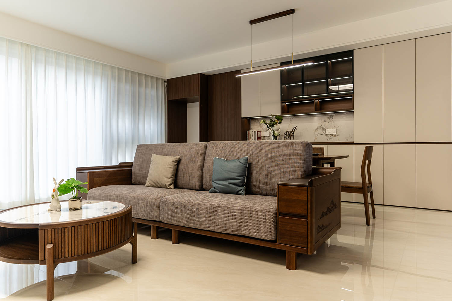 東方之神,舍傳統(tǒng)之形,讓古典美學在現(xiàn)代空間中煥發(fā)新生 新中式風格以其典雅的氣質、深厚的文化底蘊和現(xiàn)代的舒適性,成為高端家居設計的首選。它巧妙地將中國傳統(tǒng)元素與現(xiàn)代生活需求相融合,創(chuàng)造出既有東方韻味又符合當代審美的居住環(huán)境。 對于142平米的戶型,新中式風格能充分發(fā)揮空間優(yōu)勢,通過對稱布局、留白藝術和精致細節(jié),打造出充滿文化底蘊與現(xiàn)代舒適的理想居所。 新中式風格在建發(fā)央著142平的空間中,成功實現(xiàn)了傳統(tǒng)文化與現(xiàn)代生活的對話。它不僅僅是對古典元素的簡單復制,更是對東方美學的當代詮釋,讓居住者在現(xiàn)代舒適中感受傳統(tǒng)文化的魅力。 設計精髓在于對文化符號的精準提煉、對空間意境的營造和對現(xiàn)代生活需求的滿足。只有經過如此深思熟慮的設計,才能打造出既有文化底蘊又符合當代生活需求的理想居所。