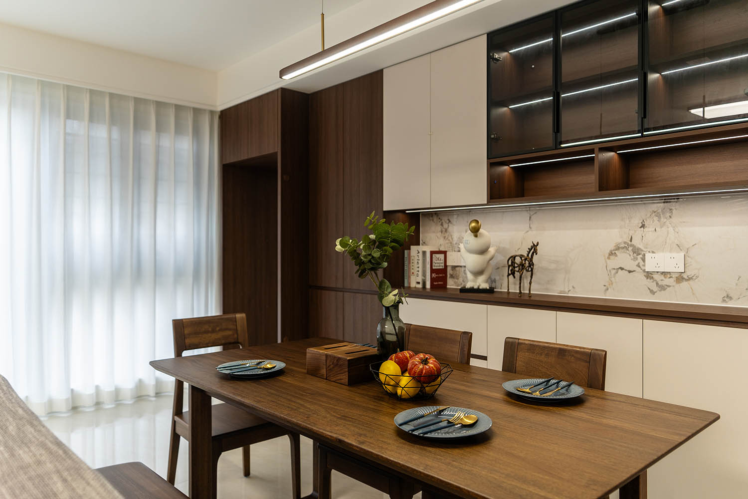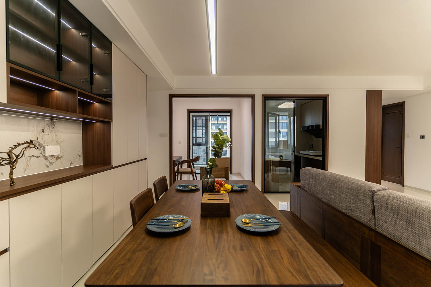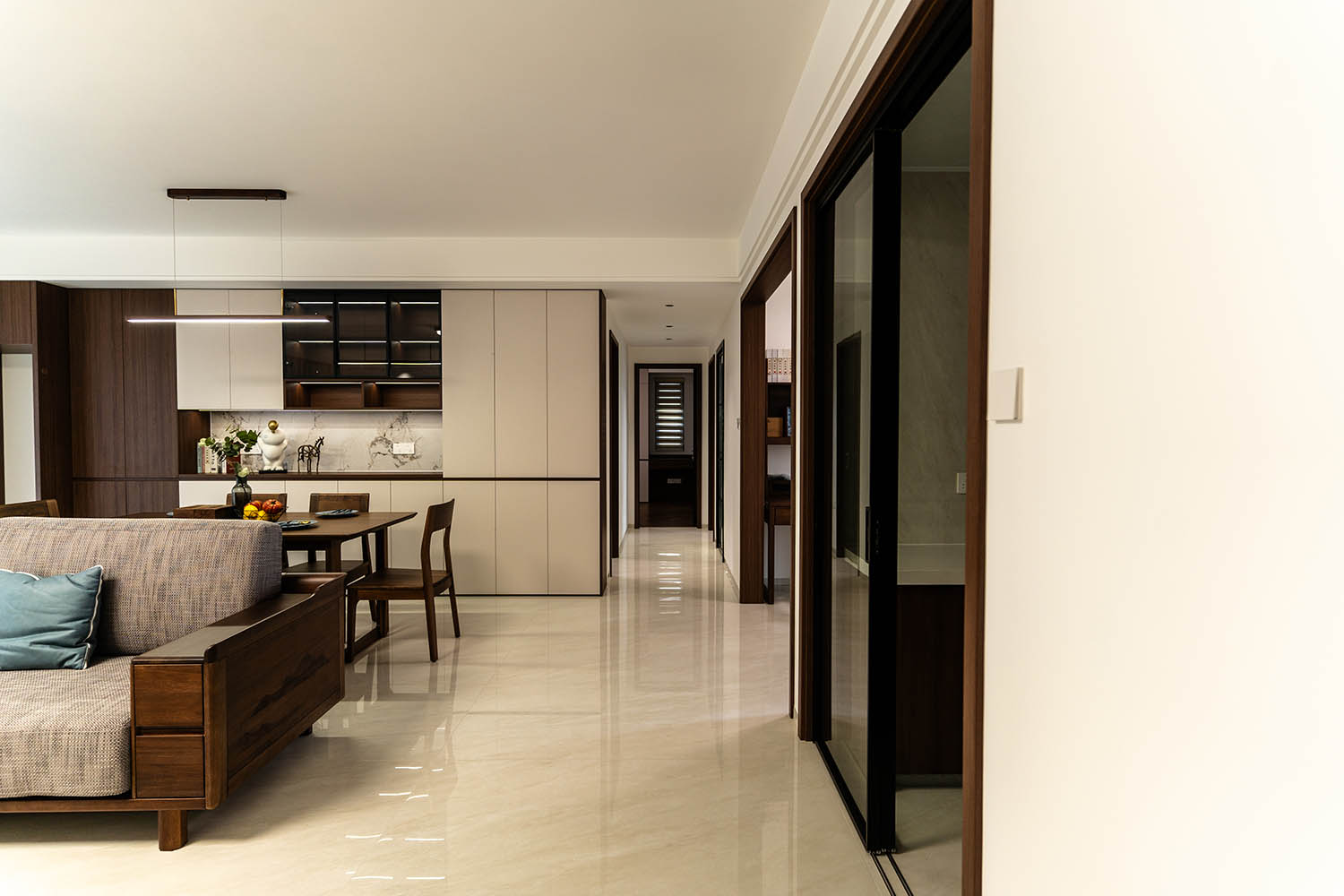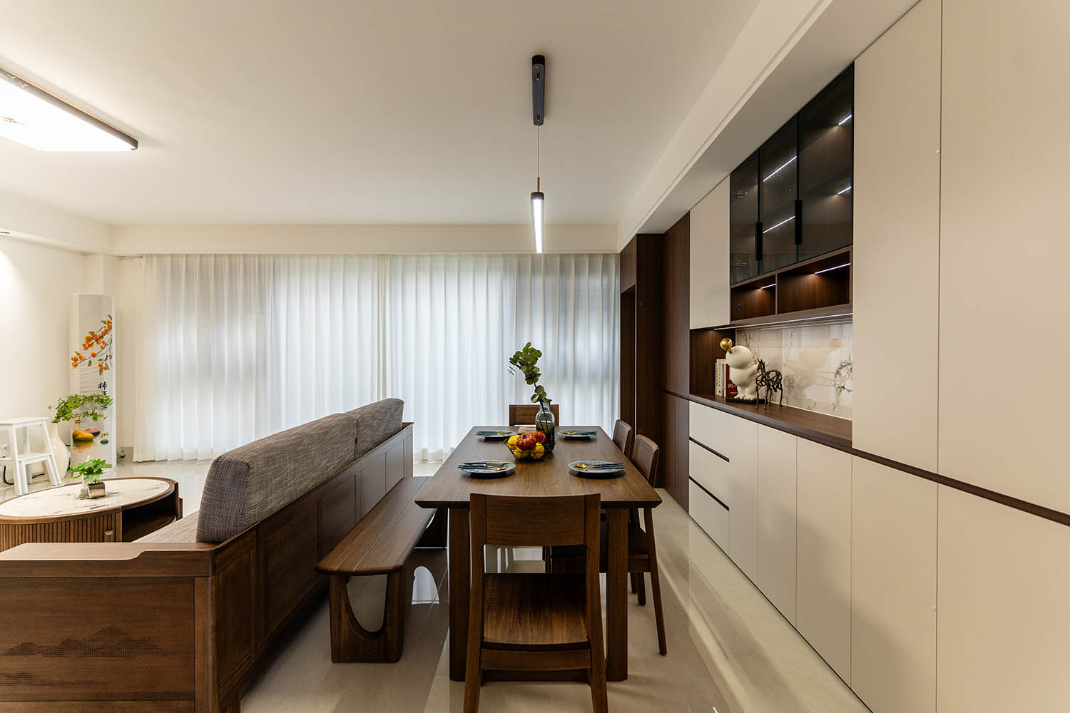 東方之神,舍傳統(tǒng)之形,讓古典美學在現(xiàn)代空間中煥發(fā)新生 新中式風格以其典雅的氣質、深厚的文化底蘊和現(xiàn)代的舒適性,成為高端家居設計的首選。它巧妙地將中國傳統(tǒng)元素與現(xiàn)代生活需求相融合,創(chuàng)造出既有東方韻味又符合當代審美的居住環(huán)境。 對于142平米的戶型,新中式風格能充分發(fā)揮空間優(yōu)勢,通過對稱布局、留白藝術和精致細節(jié),打造出充滿文化底蘊與現(xiàn)代舒適的理想居所。 新中式風格在建發(fā)央著142平的空間中,成功實現(xiàn)了傳統(tǒng)文化與現(xiàn)代生活的對話。它不僅僅是對古典元素的簡單復制,更是對東方美學的當代詮釋,讓居住者在現(xiàn)代舒適中感受傳統(tǒng)文化的魅力。 設計精髓在于對文化符號的精準提煉、對空間意境的營造和對現(xiàn)代生活需求的滿足。只有經過如此深思熟慮的設計,才能打造出既有文化底蘊又符合當代生活需求的理想居所。