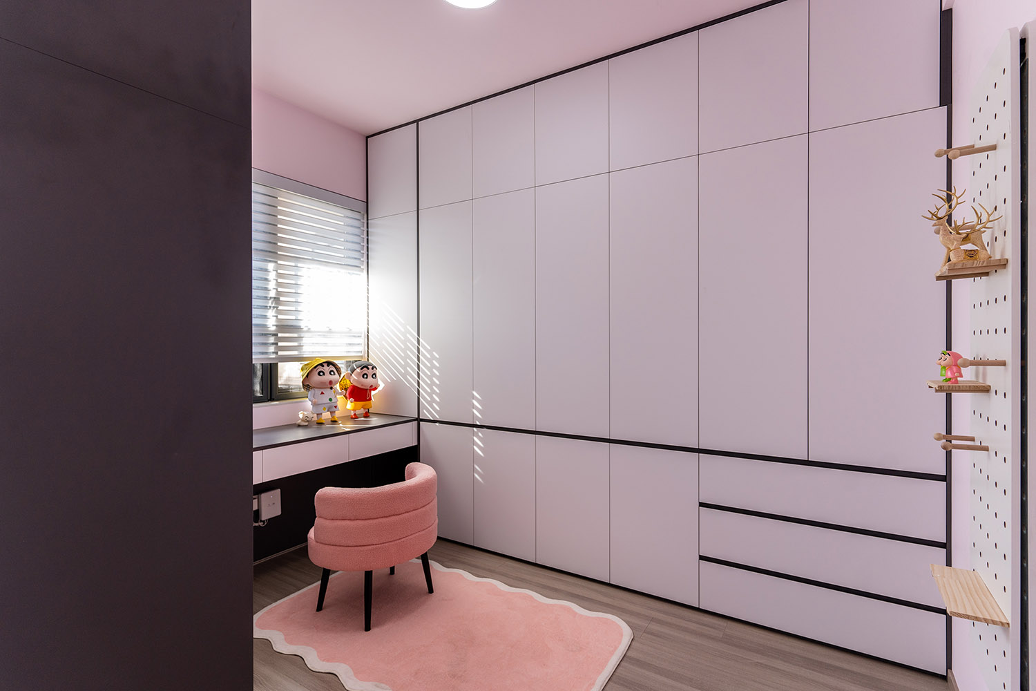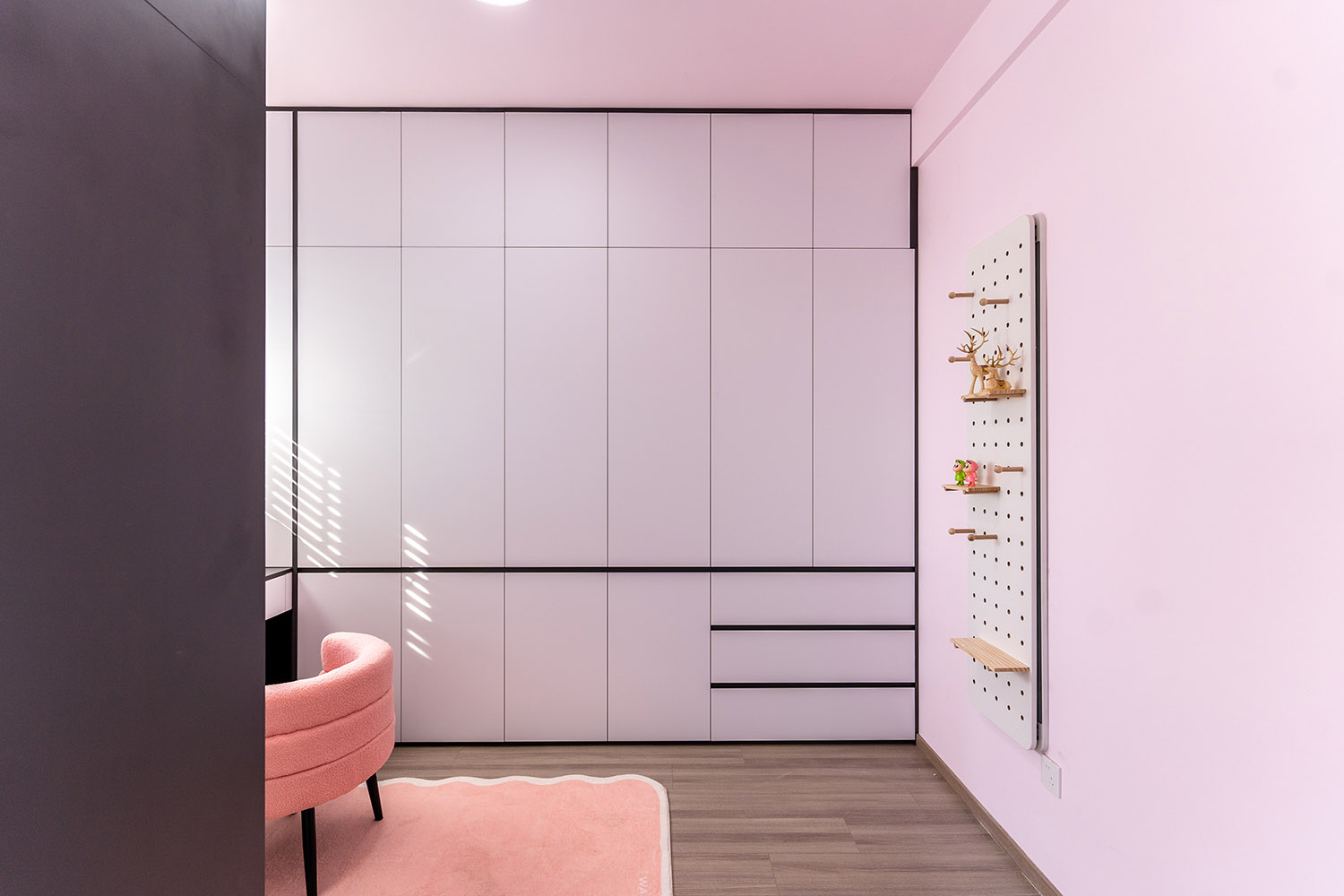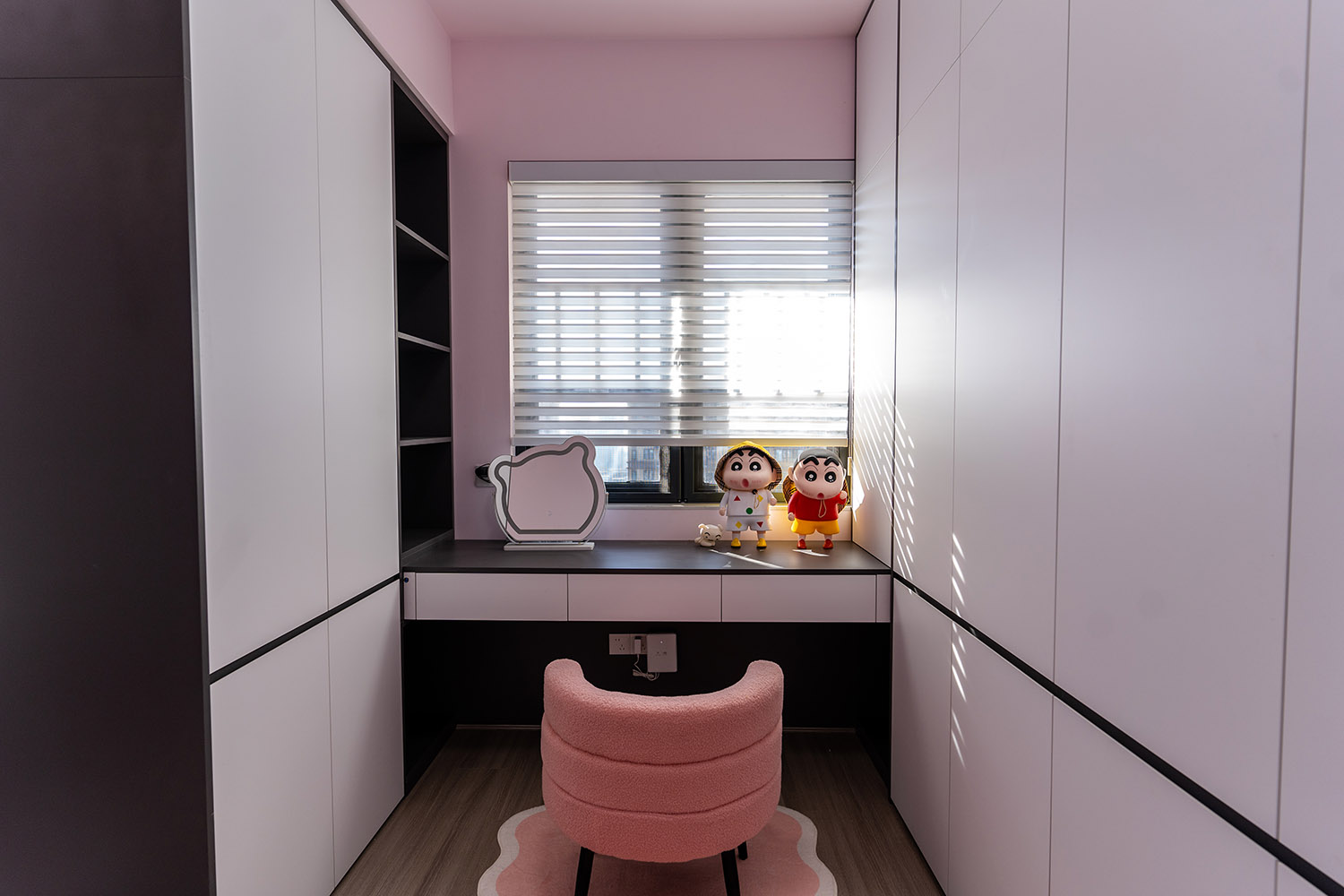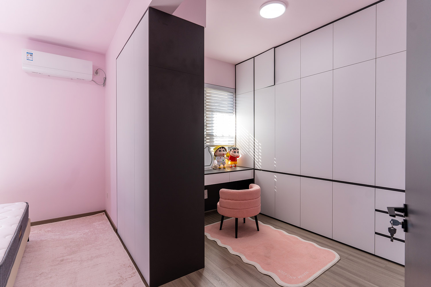 本案以“像素重組” 為核心理念,將136㎡的空間視作一個可以拆解與重構(gòu)的光影實(shí)驗(yàn)室。設(shè)計放棄所有裝飾性色彩,通過黑、白、灰三種基色的極致比例控制、不同材質(zhì)在單一色系下的質(zhì)感博弈以及精密計算的光影路徑,構(gòu)筑一個理性冷靜又充滿感知張力的未來居所。這里不是色彩的缺失,而是將色彩解構(gòu)為更本質(zhì)的光、影與肌理,讓居住回歸材料與空間的本質(zhì)對話。 通過極致的黑白灰控制與材料實(shí)驗(yàn),探索了現(xiàn)代居住的一種可能性:當(dāng)色彩被剝離,空間的形式、光影與質(zhì)感便被無限放大,人對空間的感知也因此變得更為敏銳和直接。它并非一個“冷淡”的空間,而是一個高度凝練、充滿理性之美并能包容居住者所有情緒與生活的“寧靜背景板”。在這里,一幅畫、一株綠植、一本書,乃至居住者本身,都將成為空間中最生動、最富色彩的焦點(diǎn)。