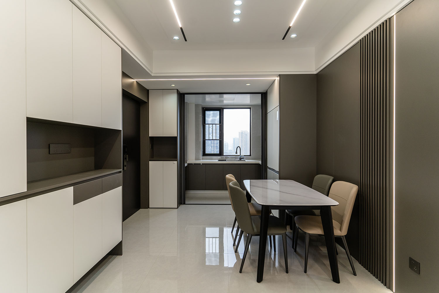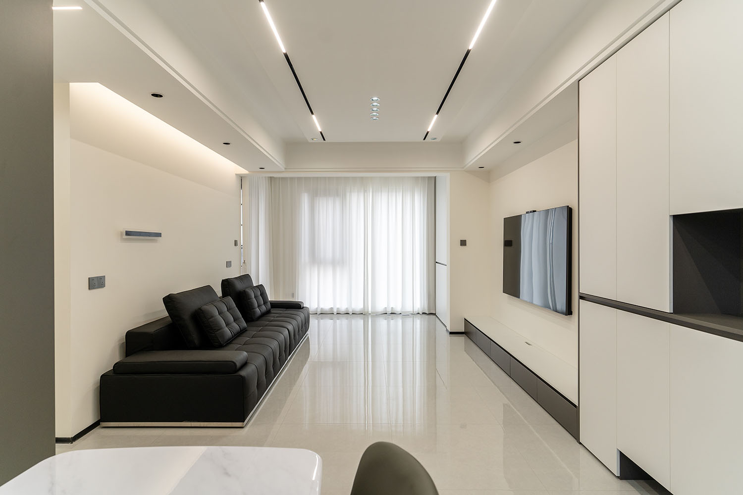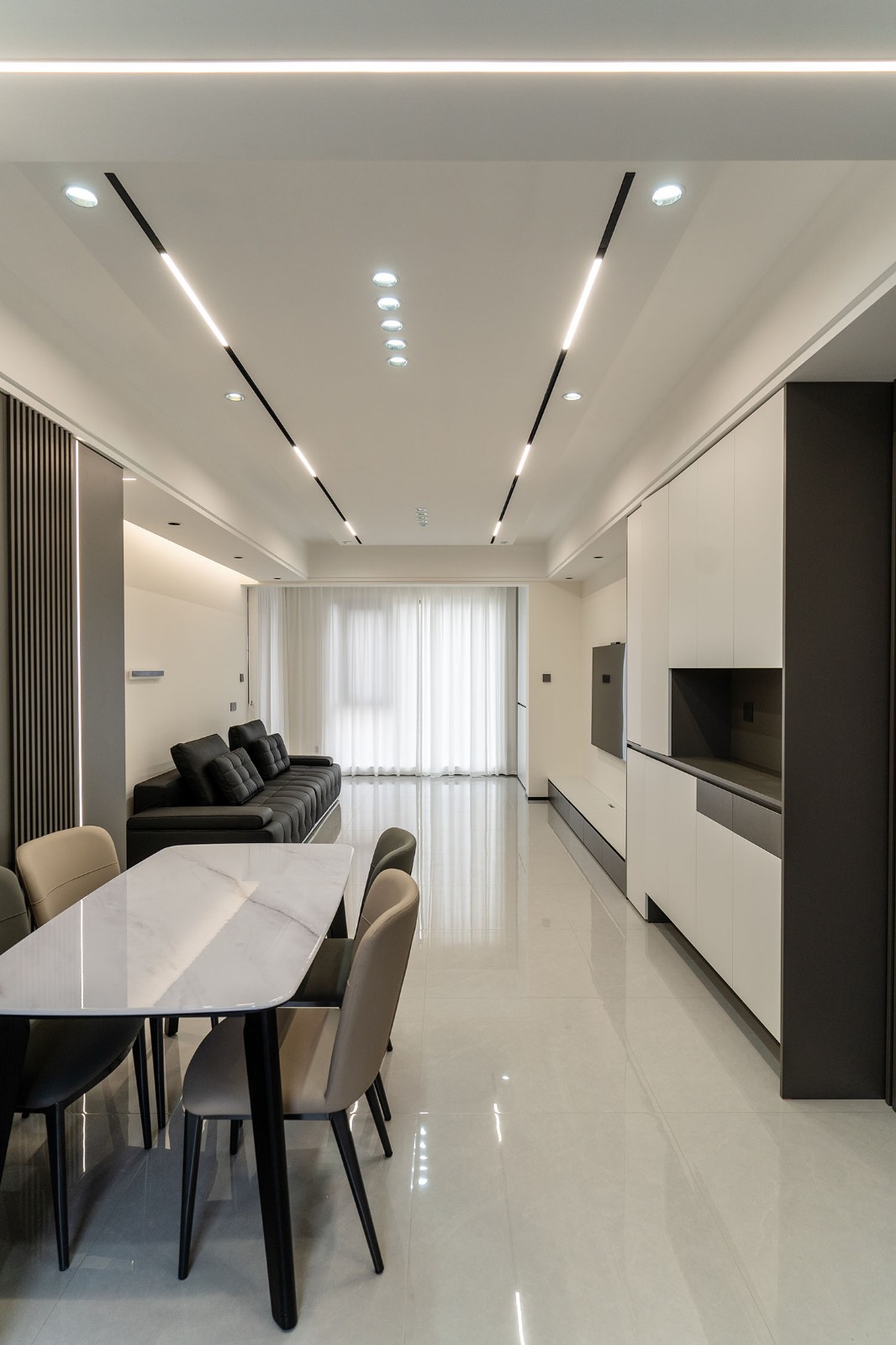 設(shè)計理念:簡而不減,功能至上 現(xiàn)代簡約風(fēng)格以其簡潔的形態(tài)、實用的功能與克制的藝術(shù)表達,成為打造理想家的經(jīng)典選擇。本案以綠地二號小區(qū)130平方米的戶型為載體,深度解析如何通過現(xiàn)代設(shè)計手法,在有限空間內(nèi)實現(xiàn)功能、美感與開闊感的最大化平衡,打造一個高效、明亮、宜居且充滿細節(jié)品質(zhì)的現(xiàn)代居所。 本案的核心設(shè)計理念是 “簡于形,精于心” 。旨在通過精準的布局、一體化的定制和克制的裝飾,實現(xiàn)功能性與美學(xué)的完美平衡。設(shè)計拒絕為形式而形式,每一處都回歸到居住的本質(zhì)需求,在滿足強大收納和流暢動線的基礎(chǔ)上,通過材質(zhì)、光影和線條的細微變化,營造出一個兼具理性邏輯與感性溫度的現(xiàn)代家園。