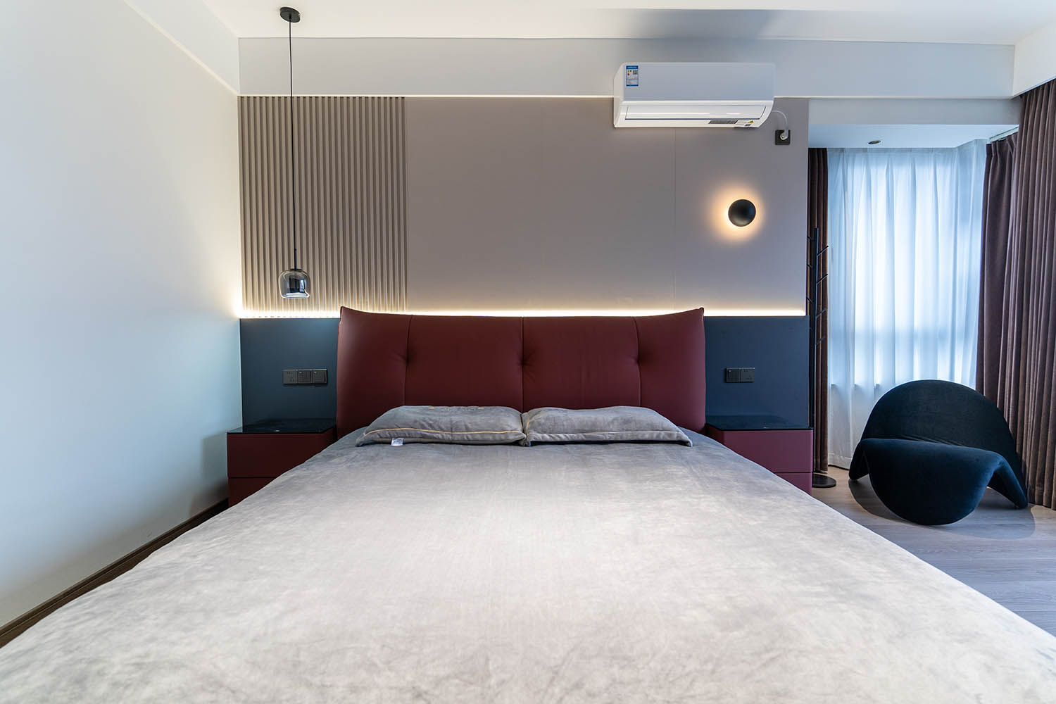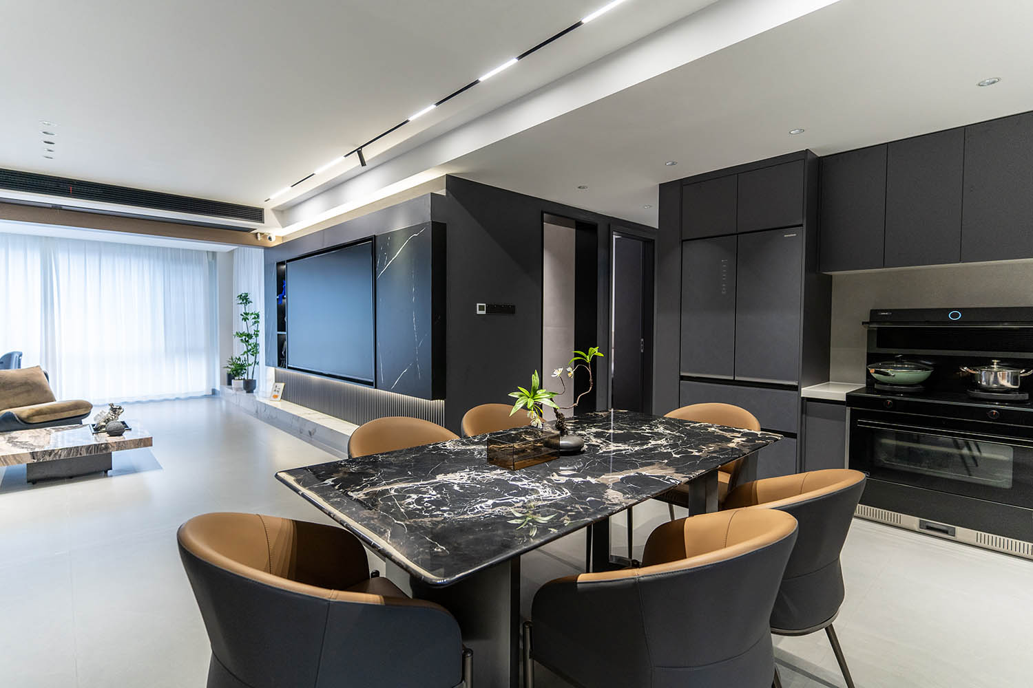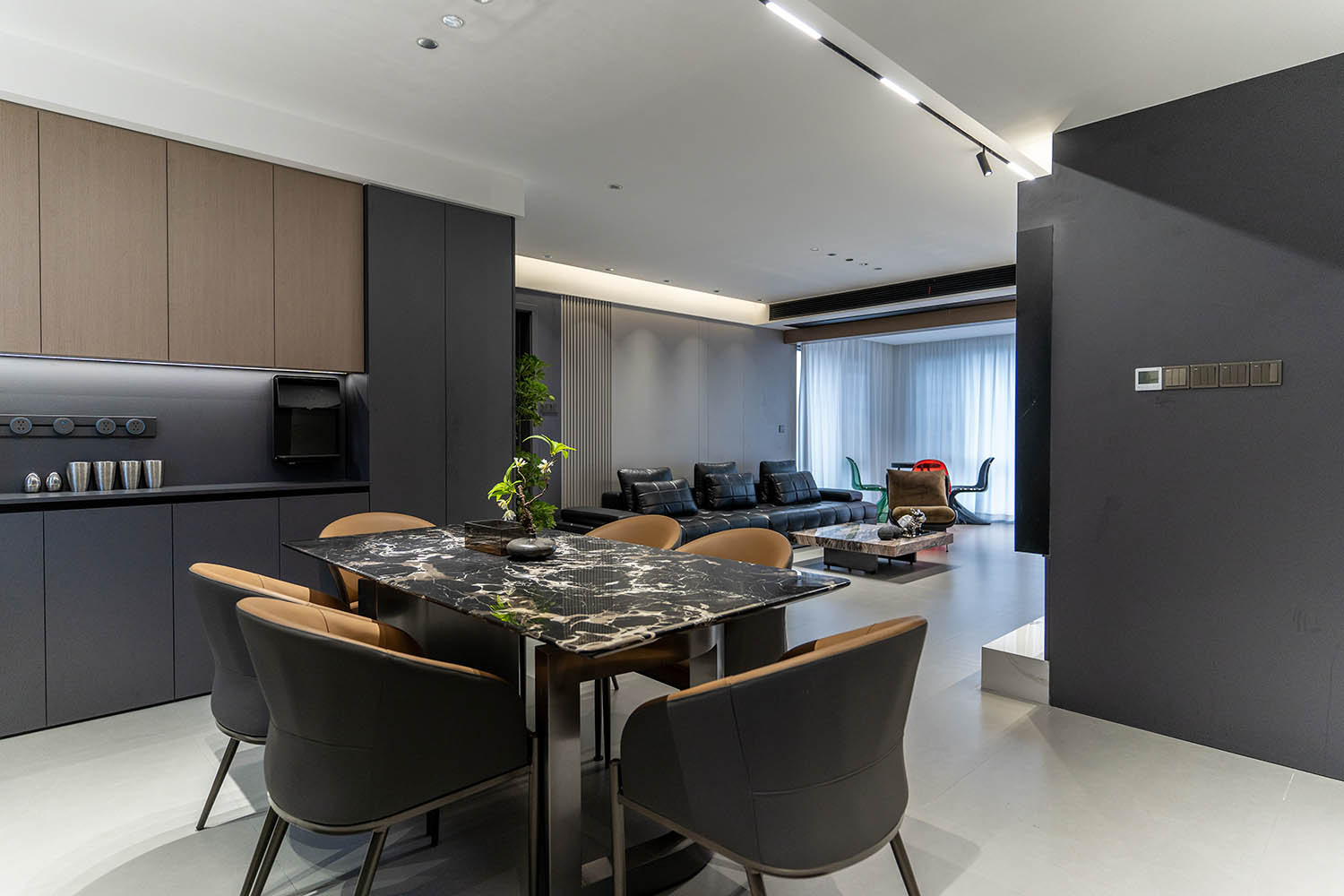 全屋以灰咖色為基調(diào),整個(gè)空間簡(jiǎn)約大氣,有層次感,打造了一個(gè)高級(jí)沉穩(wěn)的家居空間,區(qū)塊之間規(guī)律的穿插與互動(dòng)構(gòu)成統(tǒng)一的環(huán)境語(yǔ)言,形成具有秩序感和儀式感的居住體驗(yàn)。